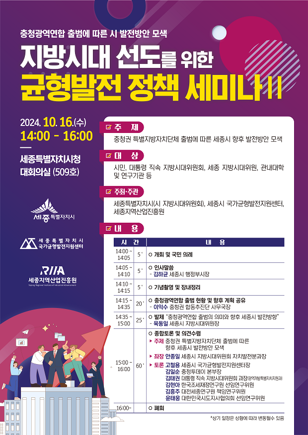 주최주관 : 세종특별자치시(시 지방시대위원회), 세종시국가균형발전지원센터, 세종지역산업진흥원