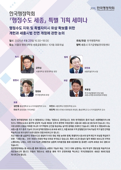 <한국행정학회 「행정수도 세종」 특별 기획 세미나>