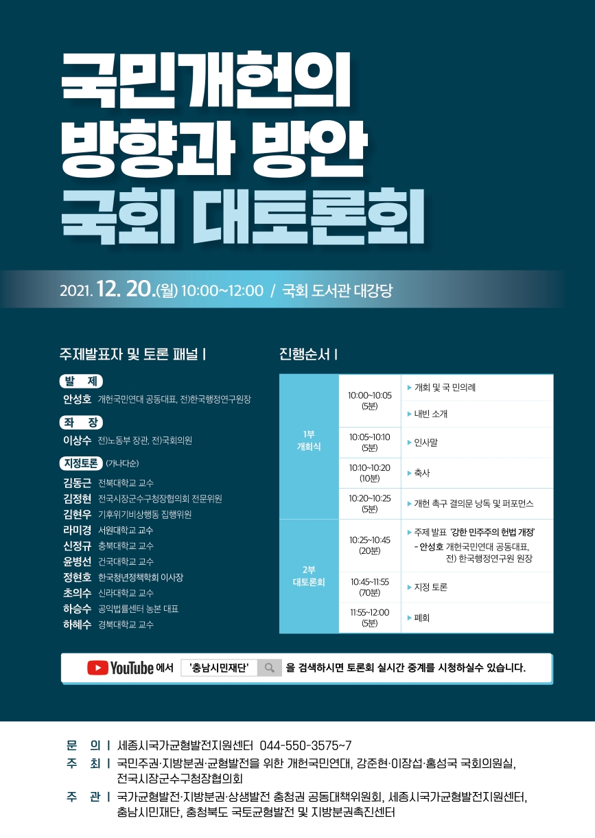 <국민개헌의 방향과 방안 국회 대토론회> (2021.12.20.) 온라인 생중계