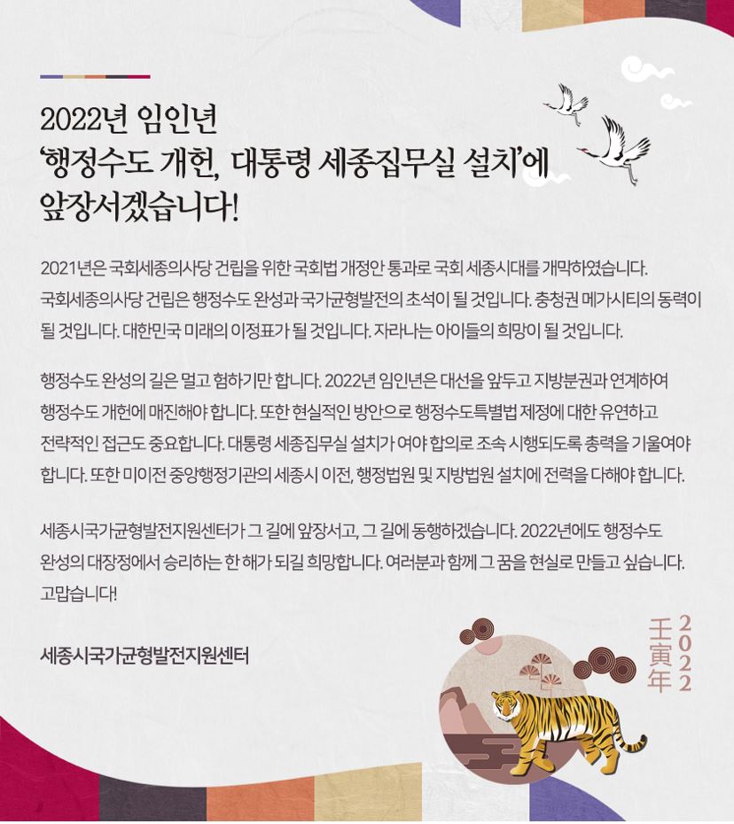 [인사말] 2022년 임인년 '행정수도 개헌, 대통령 세종집무실 설치'에 앞장서겠습니다!