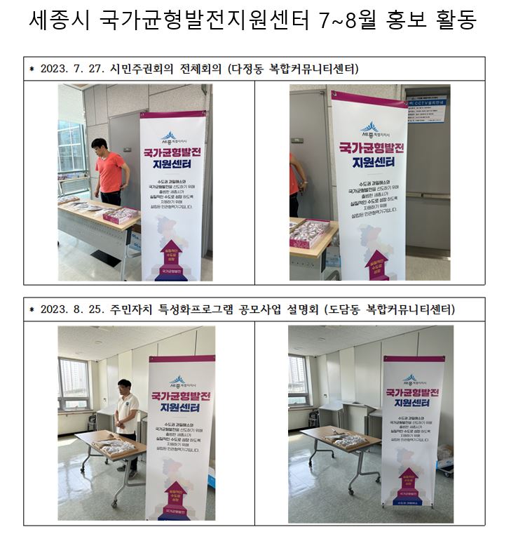 세종시 국가균형발전지원센터 7~8월 홍보 활동