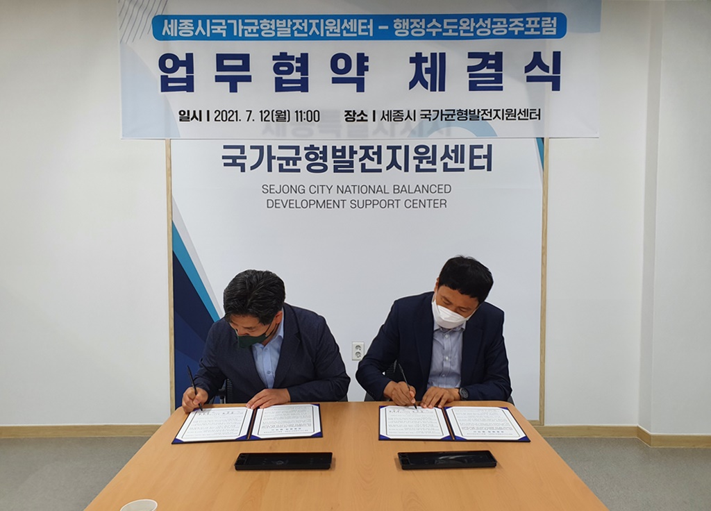 세종시 국가균형발전지원센터–행정수도완성공주포럼 업무협약 체결식